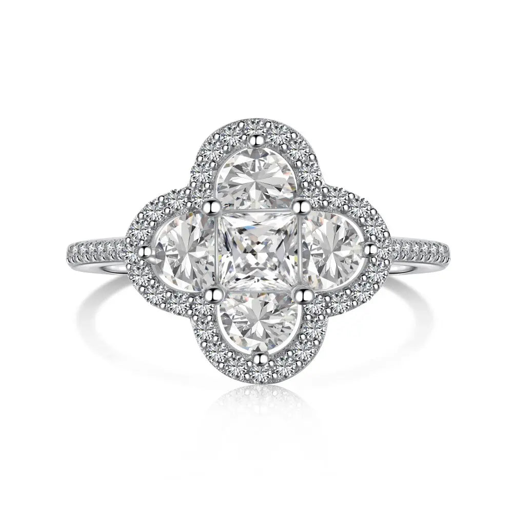 S925 Sterling Silver Quatrefoil 5A Cubic Zirconia Ring