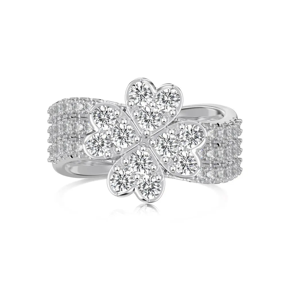S925 Sterling Silver Four-Leaf Clover 5A Cubic Zirconia Ring