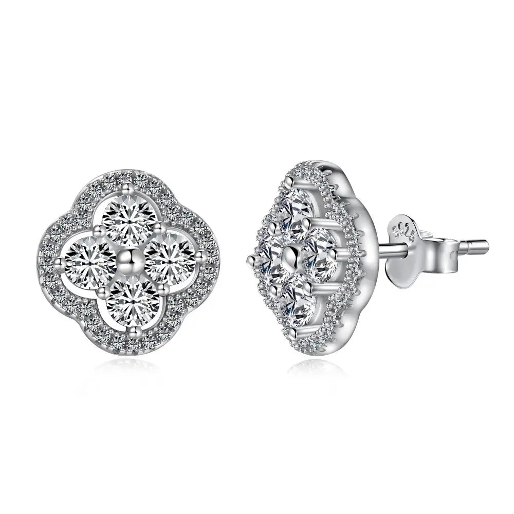 S925 Sterling Silver Four-Leaf Clover Cubic Zirconia Stud Earrings
