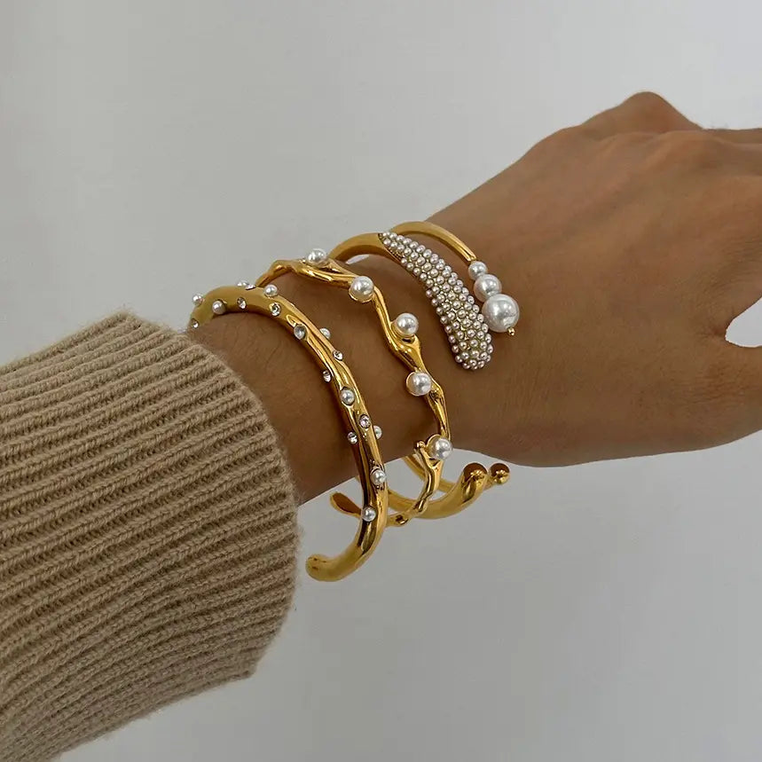 Gold & Silver-Plated Stainless Steel Double-Layer Shell Pearl Bracelet