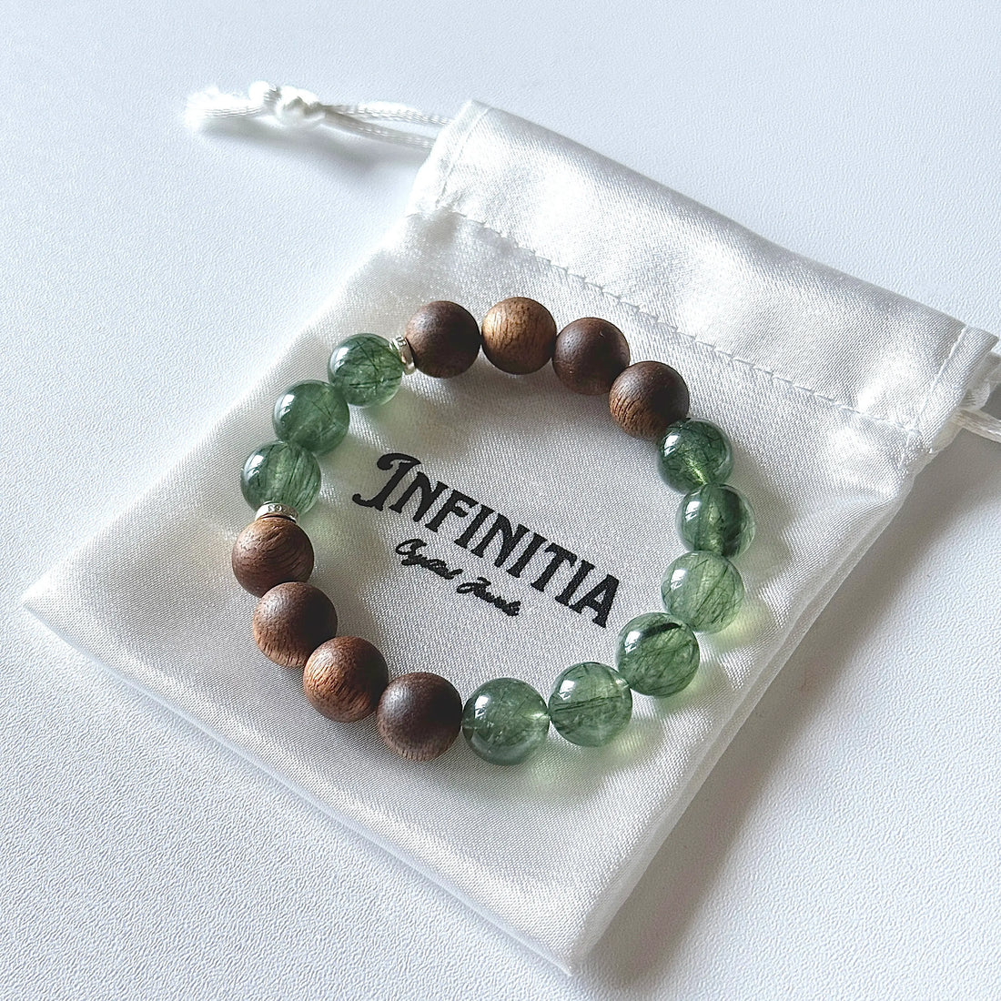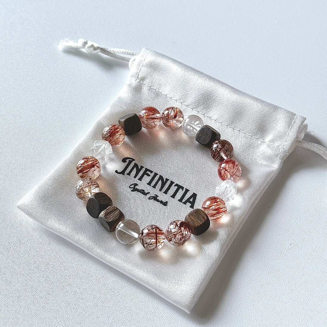Black Golden Rutilated Quartz & Agarwood Bracelet