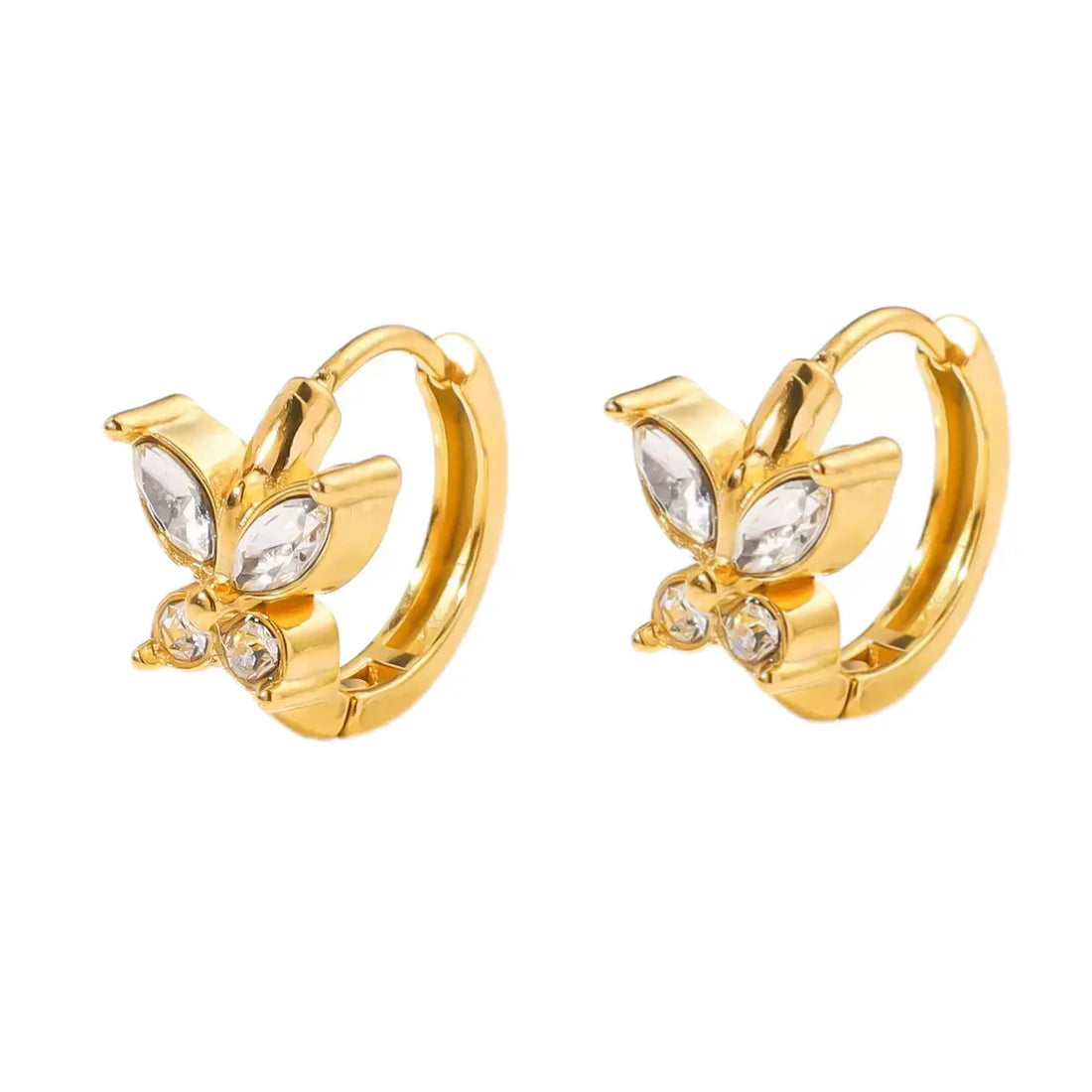 Gold Plated Stainless Steel Butterfly Huggie Hoop Earrings with Cubic Zirconia