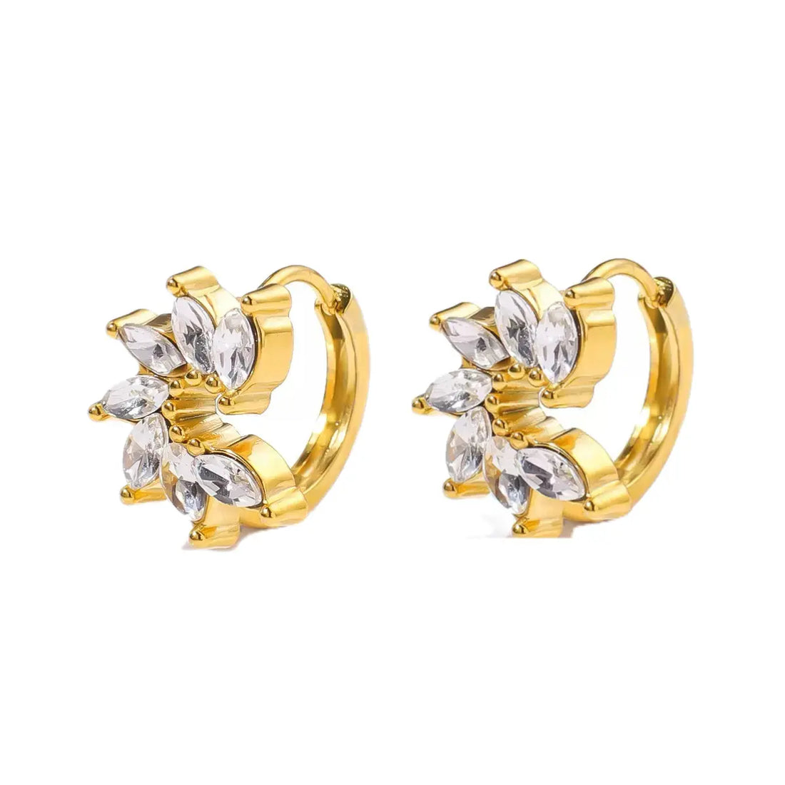 Gold-Plated Stainless Steel Marquise-Cut Cubic Zirconia Huggie Hoop Earrings