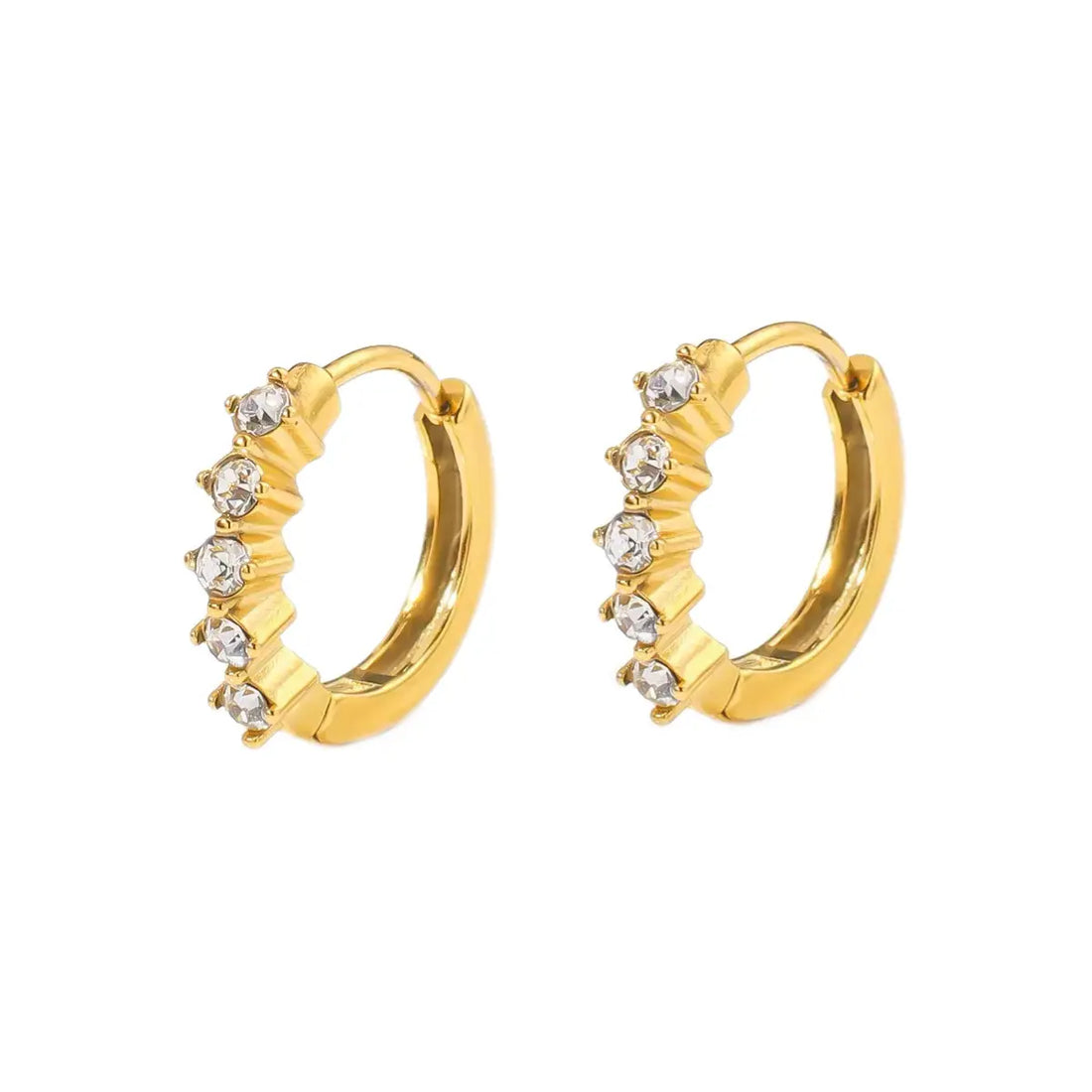 Gold-Plated Stainless Steel U-Shape Cubic Zirconia Huggie Hoop Earrings