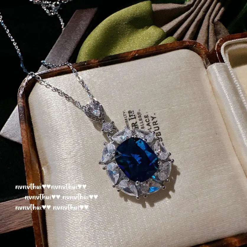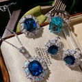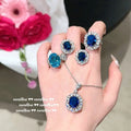 Sri Lankan Blue Sapphire Floral Jewelry Set in Gold-Plated Brass with Zircon Accents