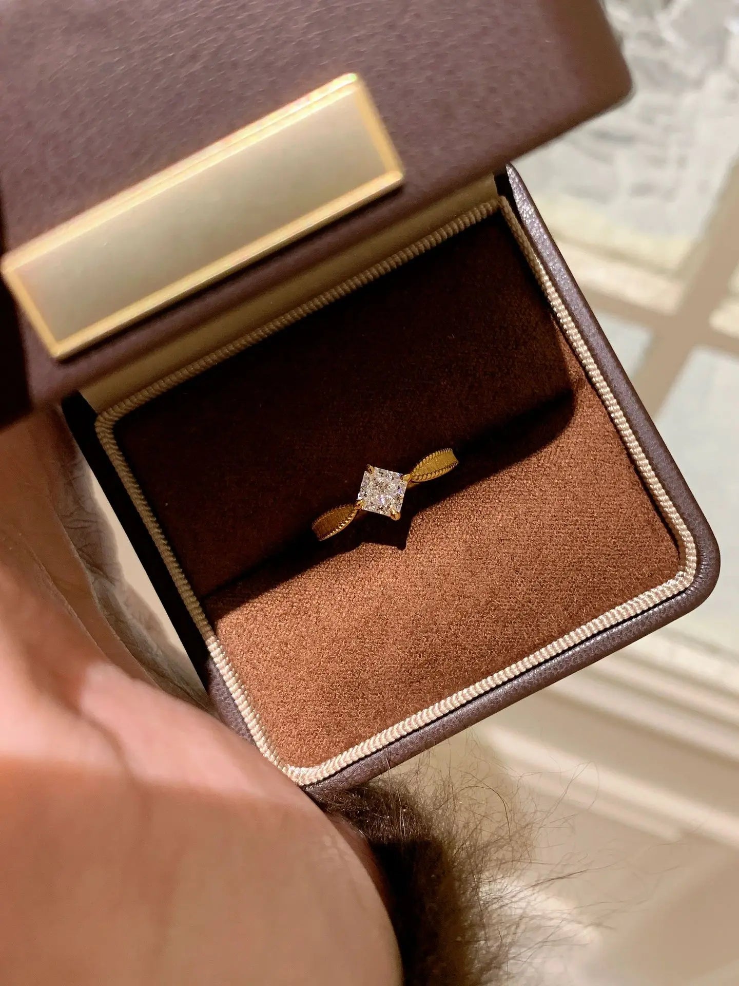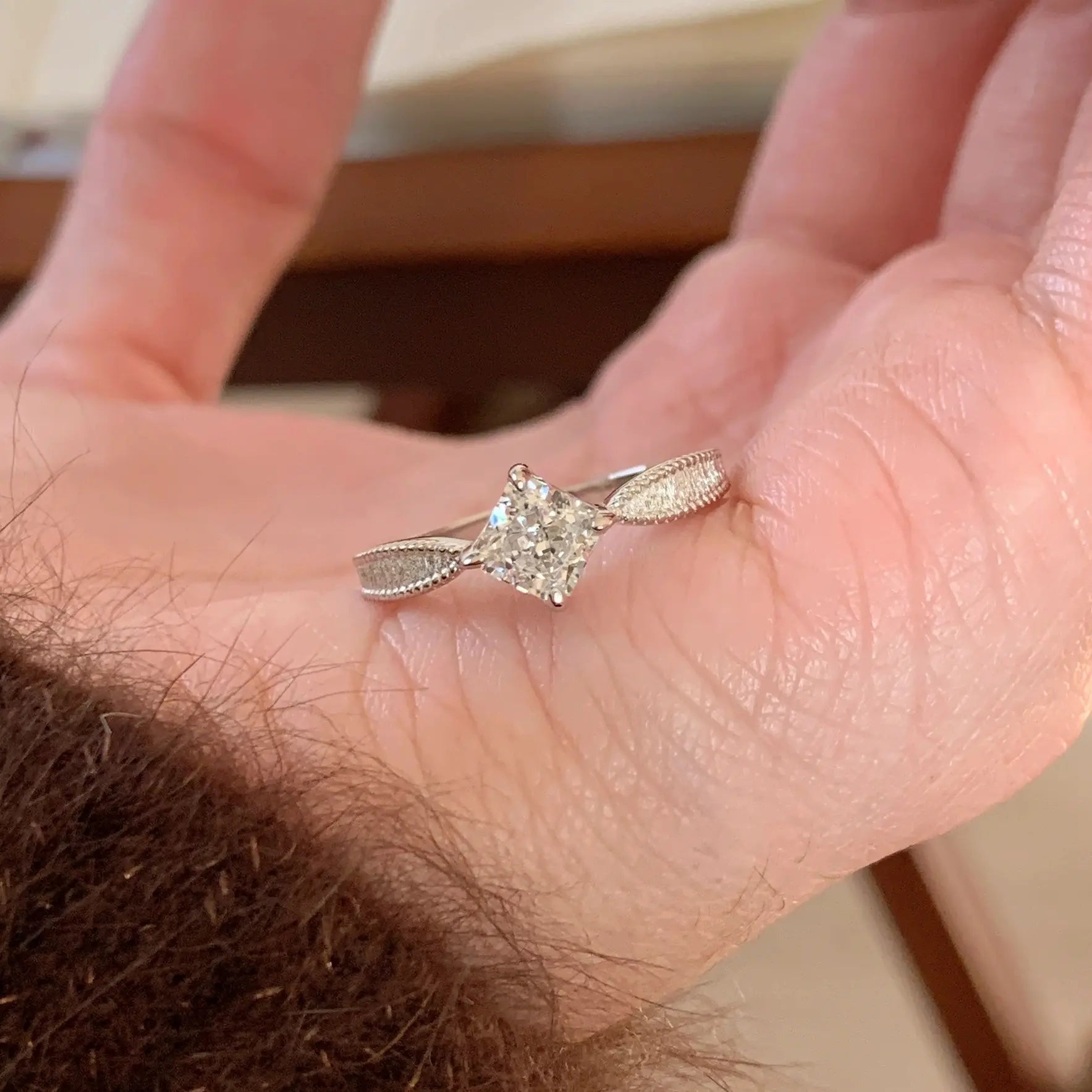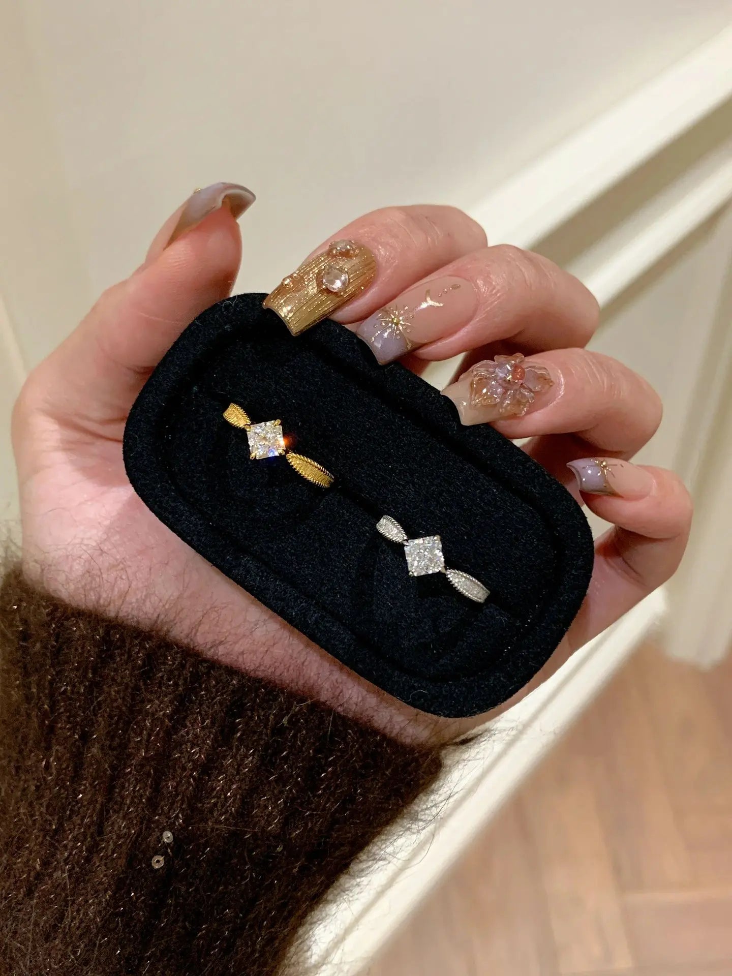925 Sterling Silver Cubic Zirconia Square - Cut Ring with Brushed Finish