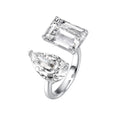925 Sterling Silver Twin - Stone Ring: Pear - Shaped Drop & Square - Cut Diamond - Like Gem Ring