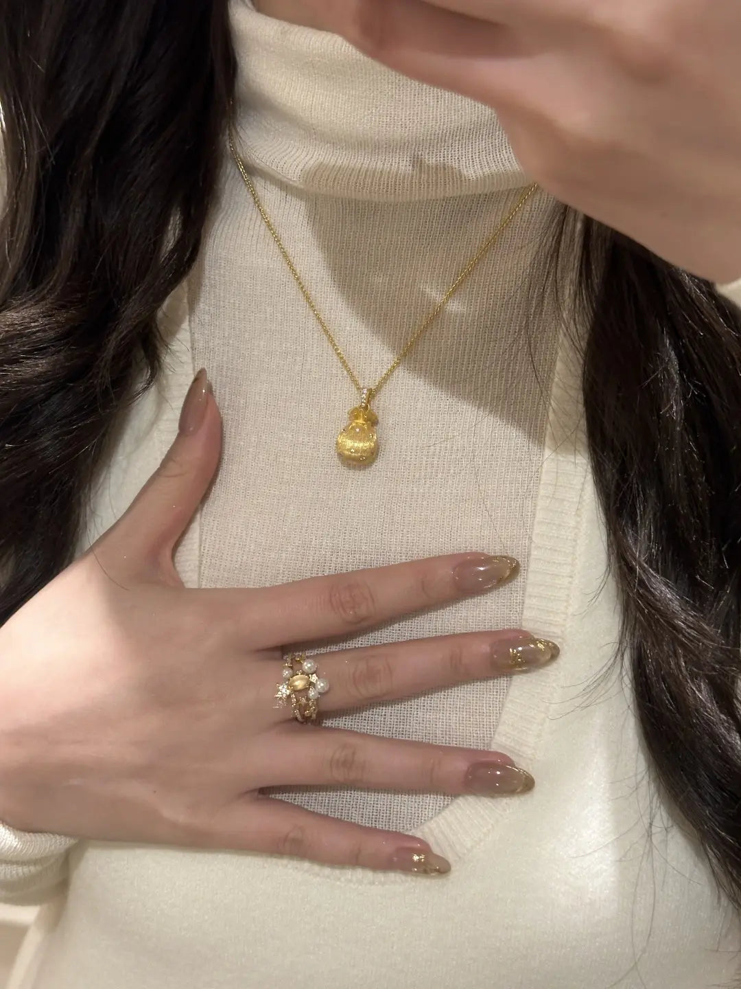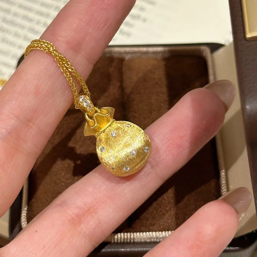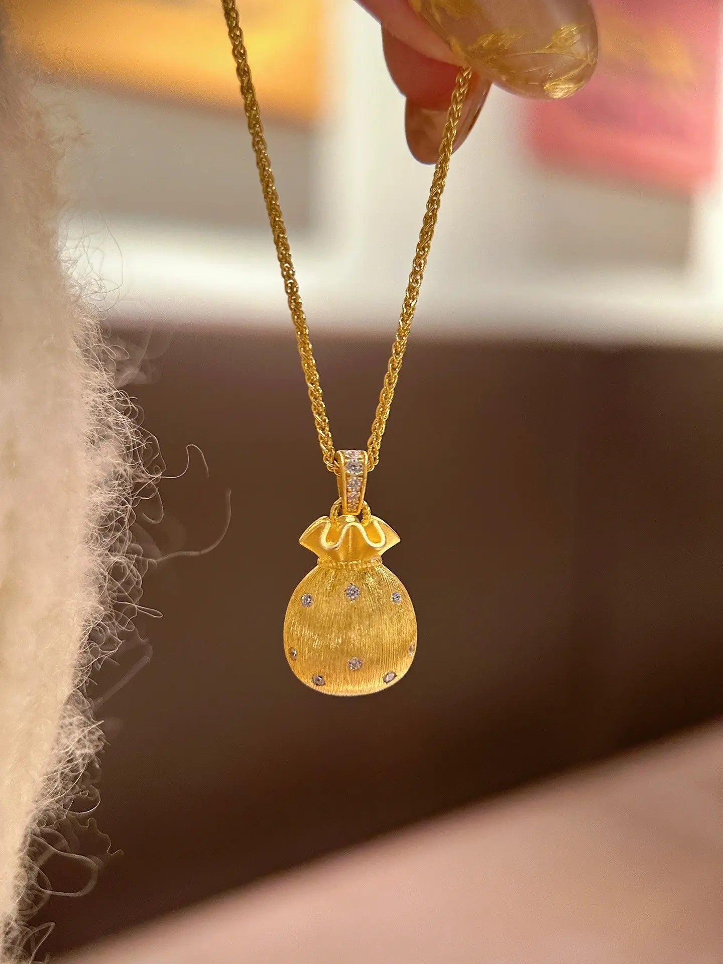 925 Silver Gold - Plated Diamond - Accented Lucky Pouch Necklace