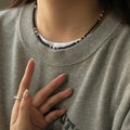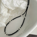 925 Sterling Silver & Black Agate Beaded Flash Necklace