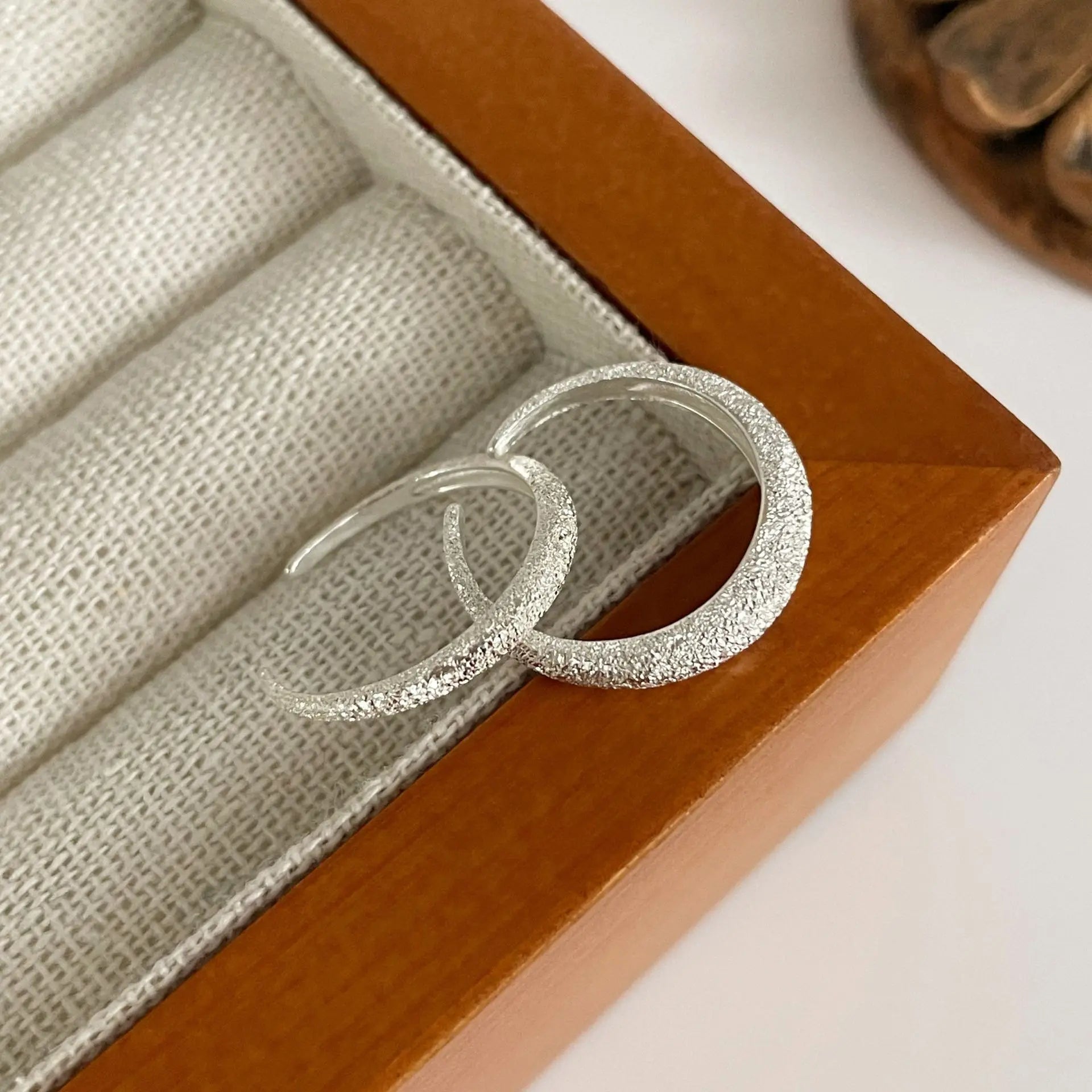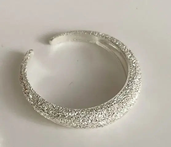 Silver - White 925 Sterling Silver Sparkling Sand Open Ring
