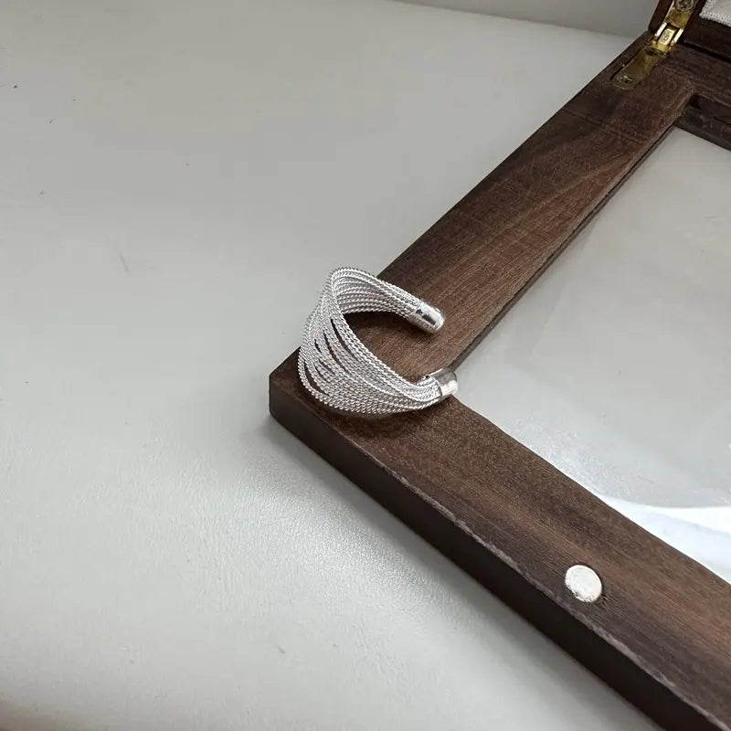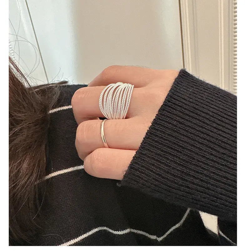 925 Sterling Silver Multistrand Thread Ring with Adjustable Open Design