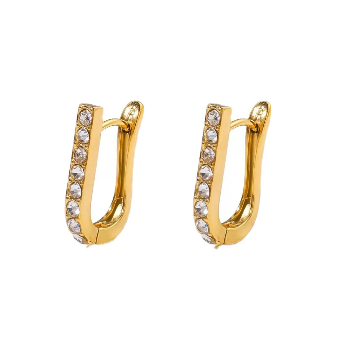Gold-Plated Stainless Steel U-Shape Cubic Zirconia Huggie Hoop Earrings