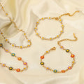 18K Gold Plated Stainless Steel Daisy Necklace & Bracelet – White & Multicolor Enamel