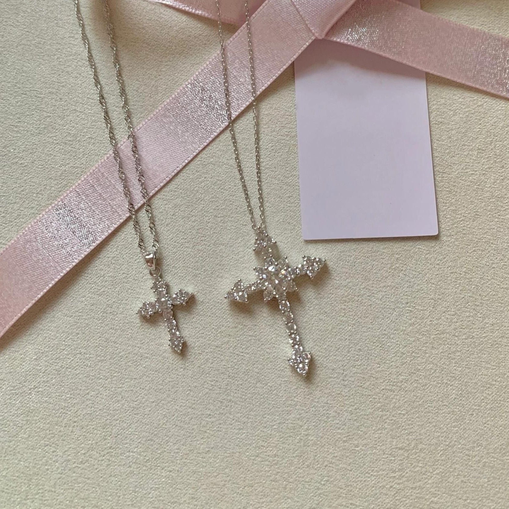 925 Sterling Silver Cross Pendant Necklace with Full - Set Cubic Zirconia