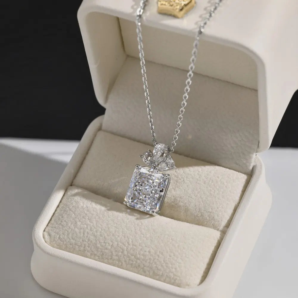 925 Sterling Silver Necklace with Ice - Flower - Cut Perfume Bottle Pendant
