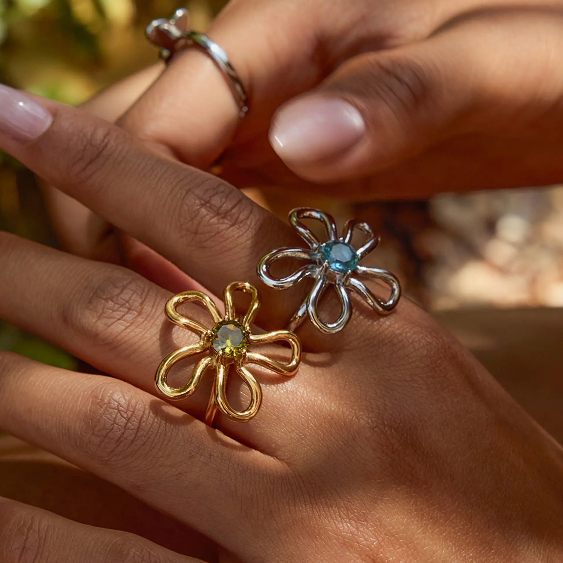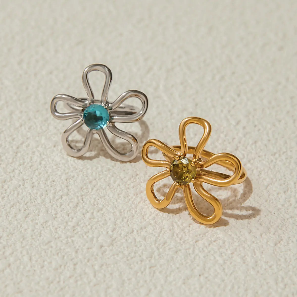 Stainless Steel Zircon Flower Ring