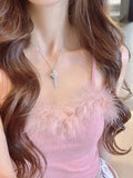 925 Sterling Silver Fairy Key Pendant Necklace with Pink Sakura Stone