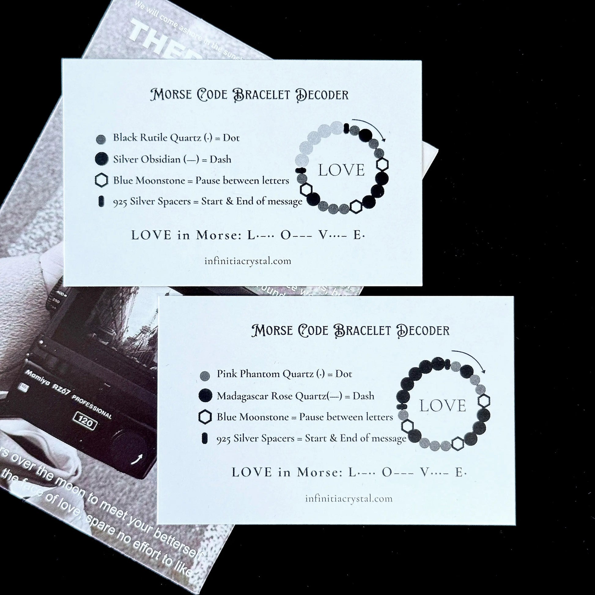 Each bracelet includes a Morse code decoding card, adding a personal, interactive touch to this symbolic love bracelet set.