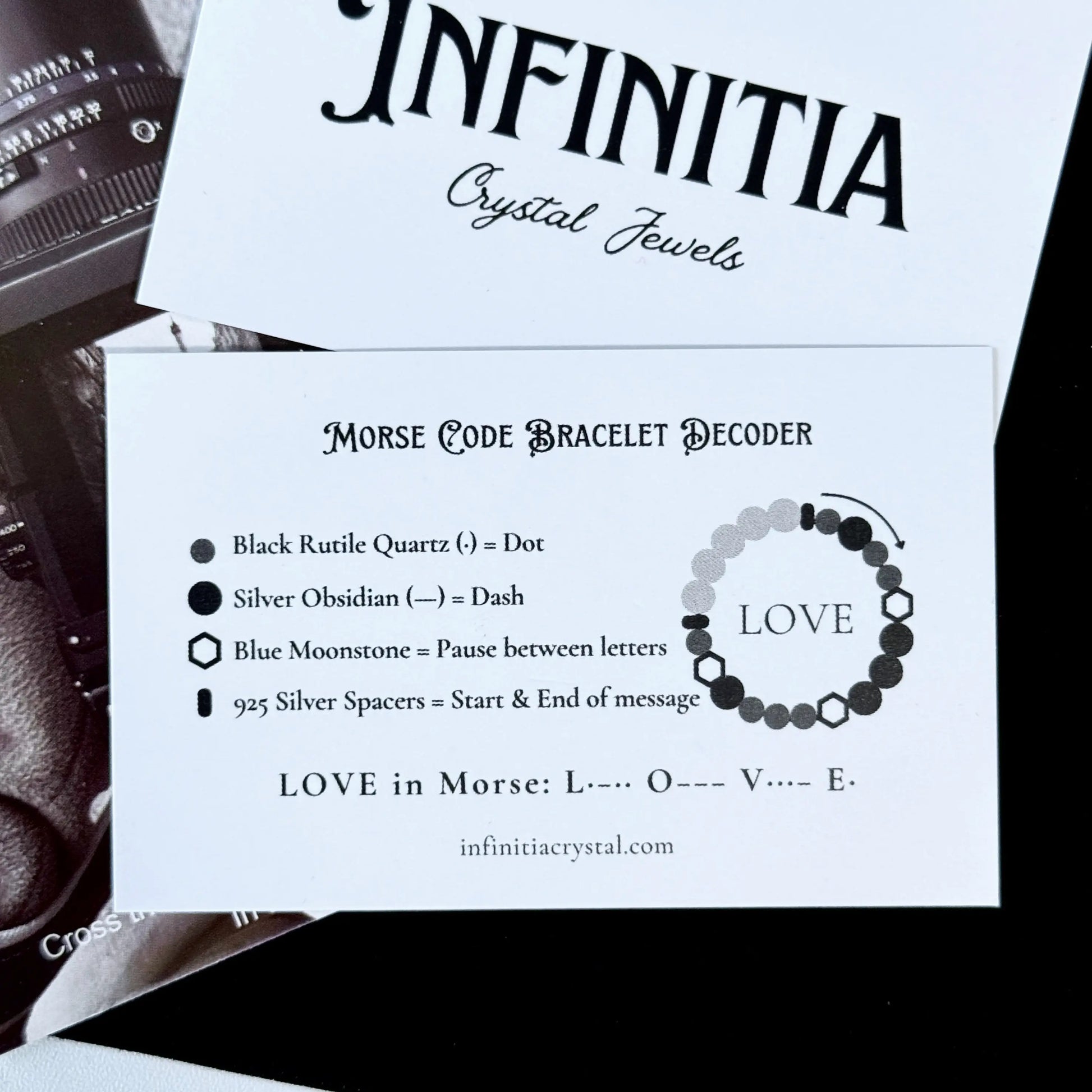 Each bracelet includes a Morse code decoding card, inviting couples to uncover the hidden message — a meaningful experience that makes this crystal bracelet for love feel deeply personal.