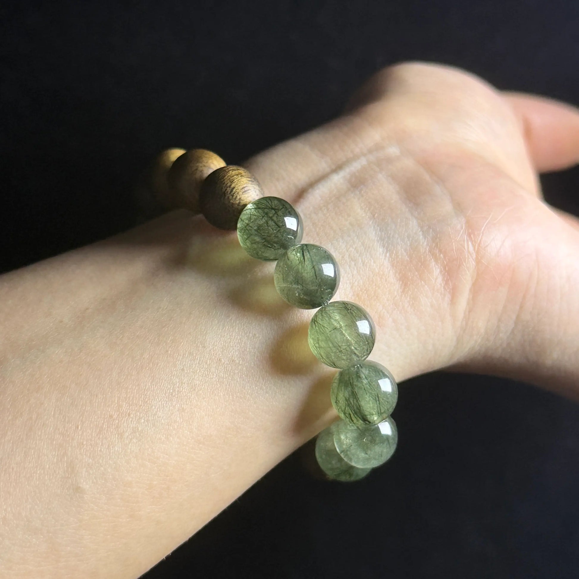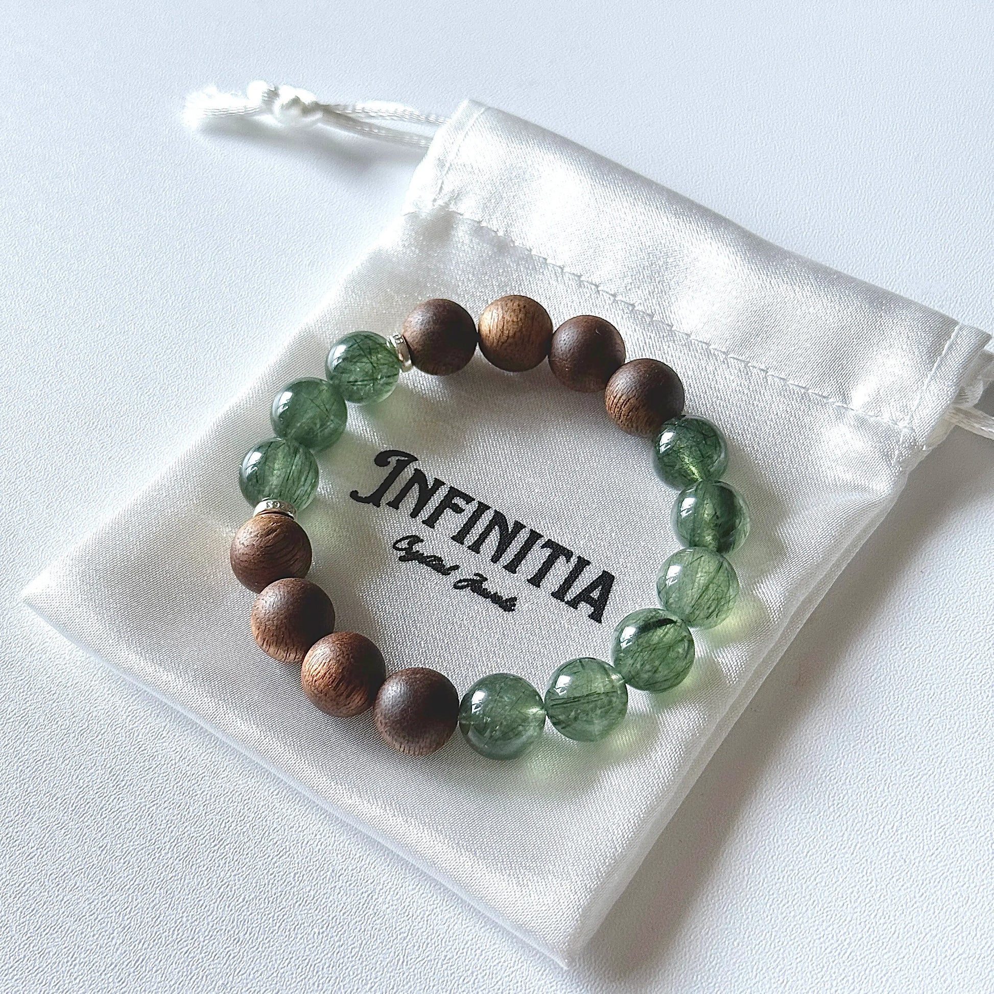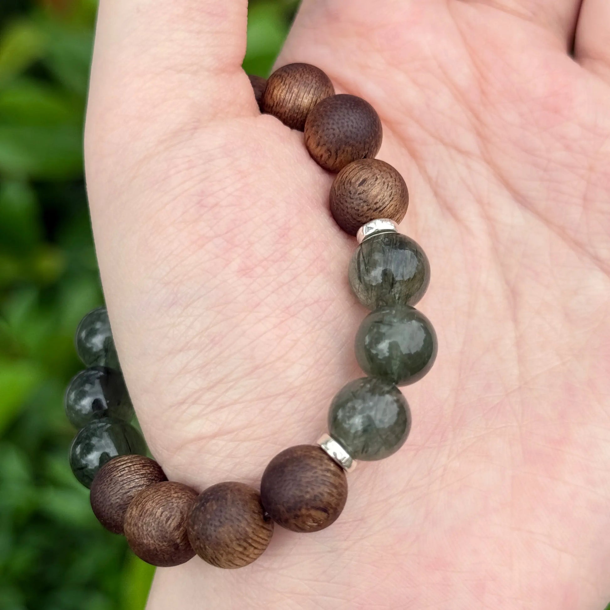 Experience the power of growth and grounding with this handmade Green Phantom Quartz (10mm) and Agarwood (10mm) bracelet. A balanced design that encourages personal transformation while offering emotional calm and stability.