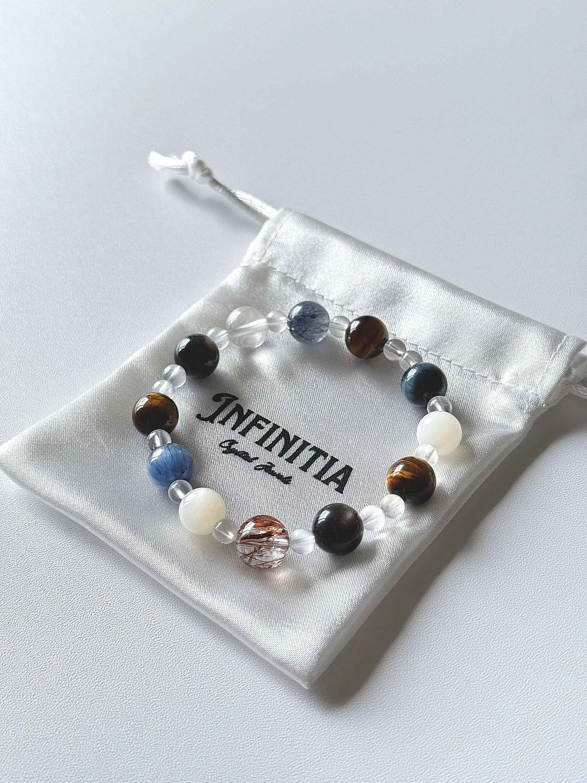 - Blue Rutile Quartz (10mm) – Supports mental focus, goal-setting, and emotional discipline.