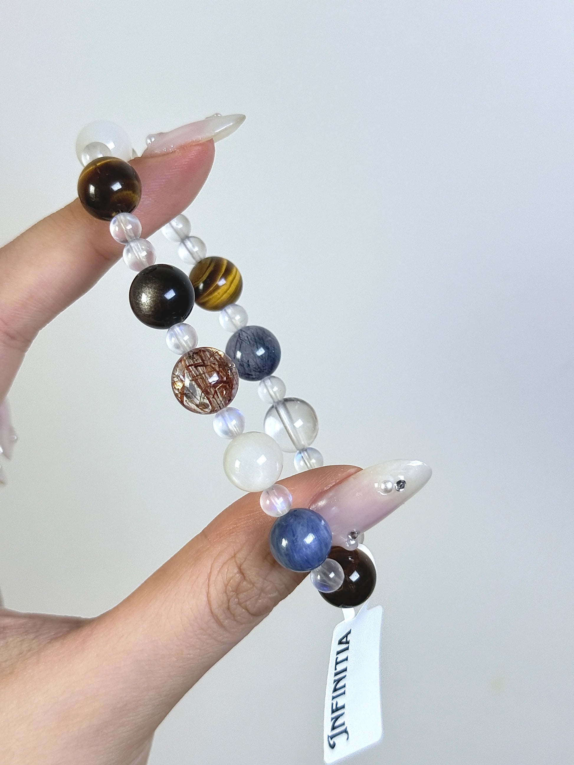 - Black Golden Super Seven (10mm) – A rare and powerful master crystal that activates all chakras. Promotes spiritual awakening, clears deep-seated energy blocks, and connects you to your soul purpose. (super seven bracelet)